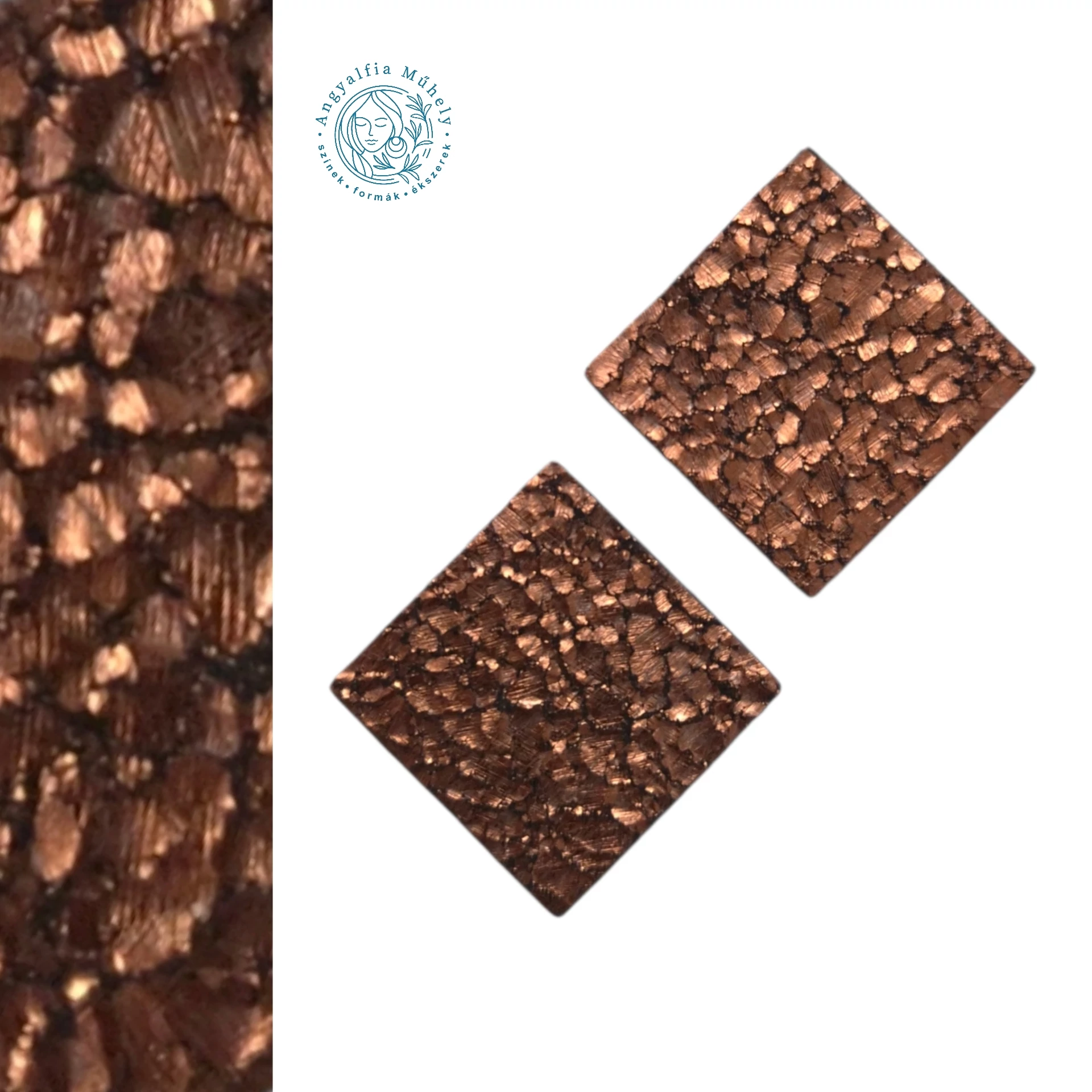 Csillogó rozsda bedugós bőr fülbevaló, négyzet