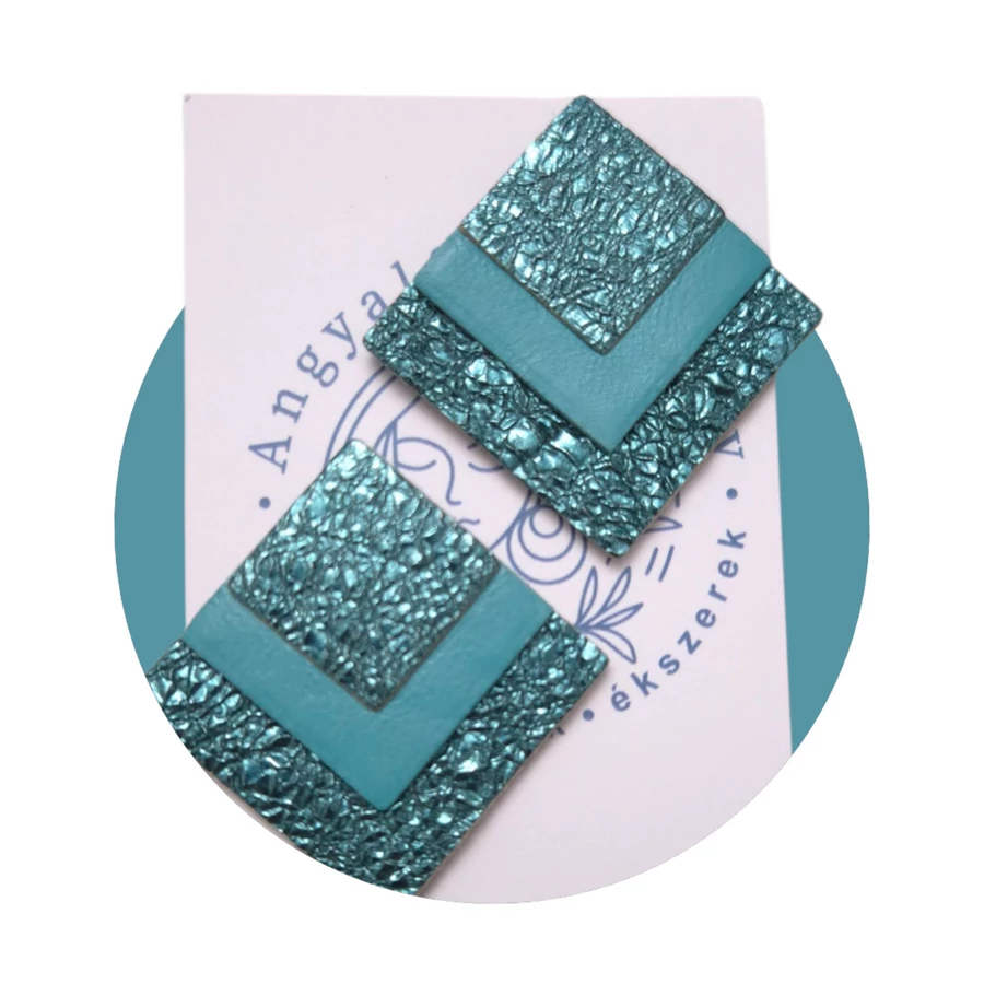 Csillogó türkiz bedugós négyzet bőr fülbevaló