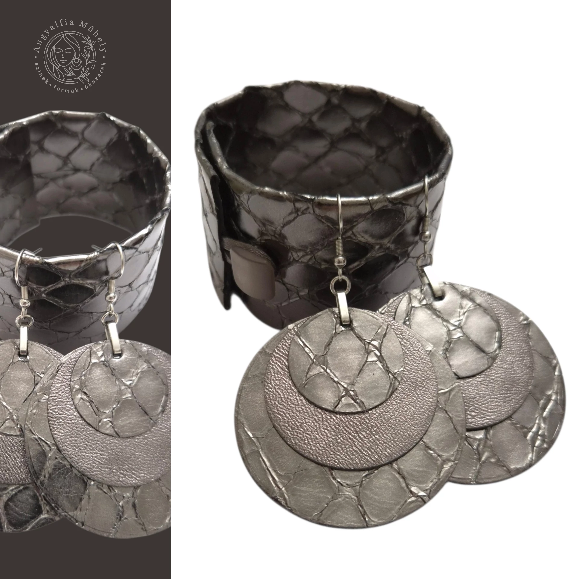 Csodaszép grafitszürke bőr ékszerszett, kör fülbevalóval