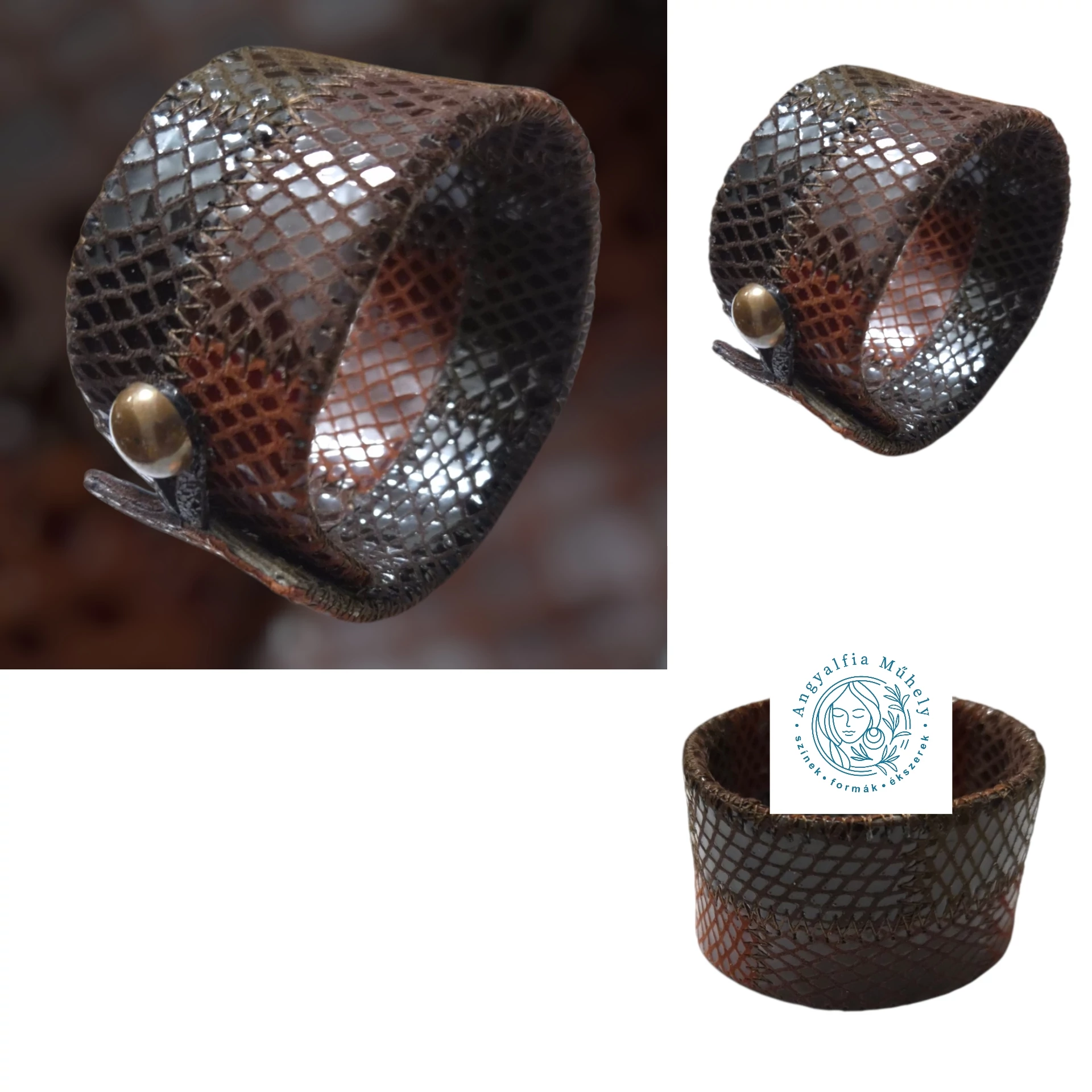 Csokoládébarna bőr karkötő, enyhe csillogással