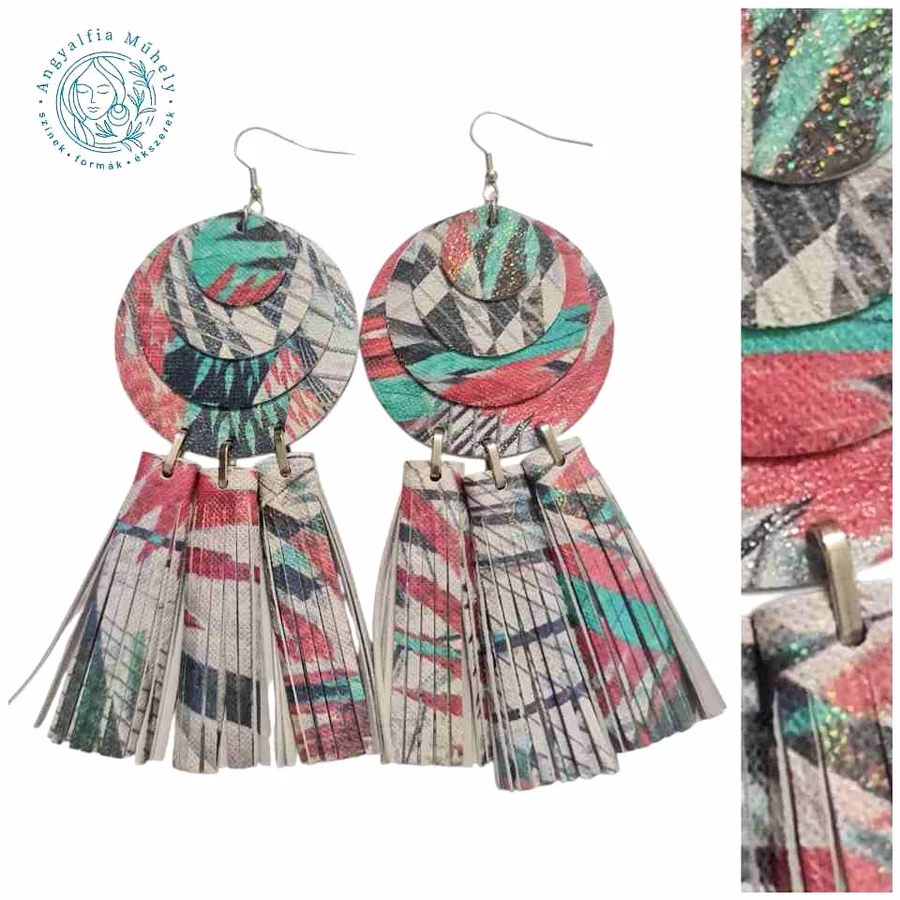 Extravagáns kör-rojtos statement bőr fülbevaló