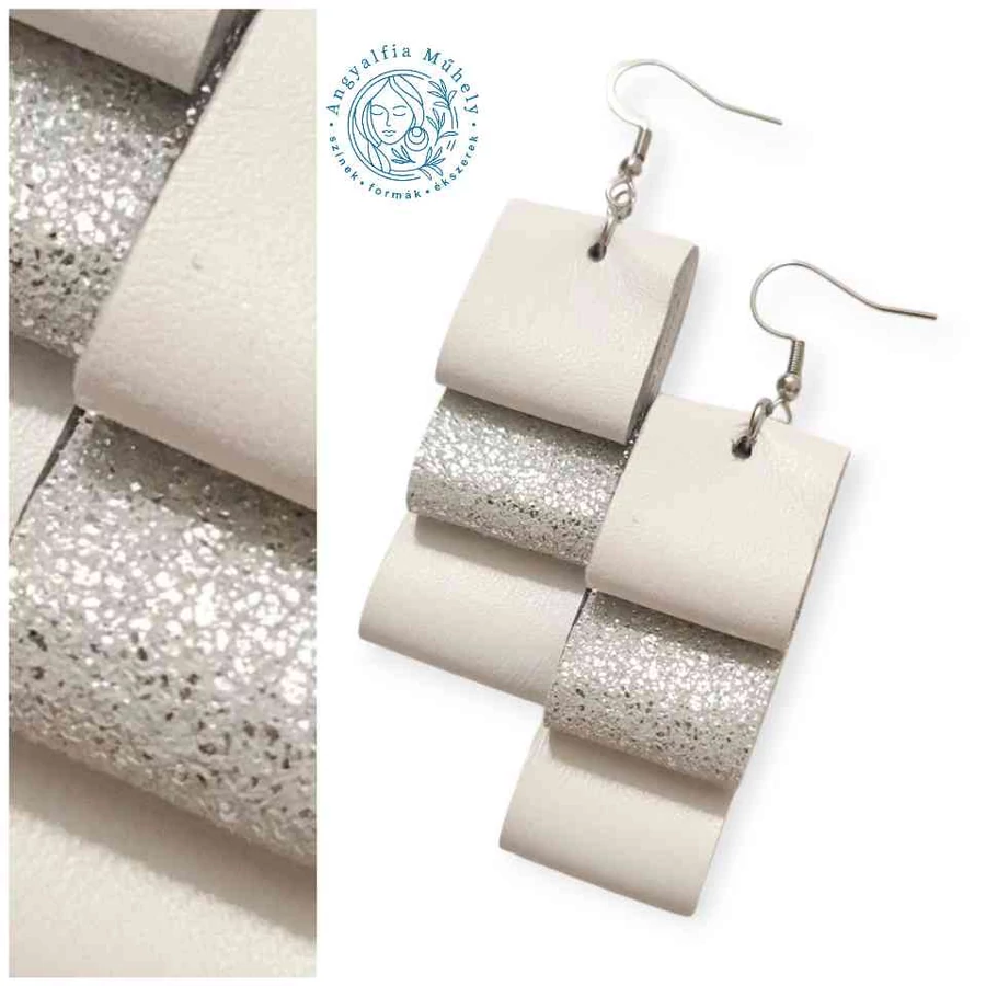 Fehér-csillogó ezüst hajtogatott bőr fülbevaló
