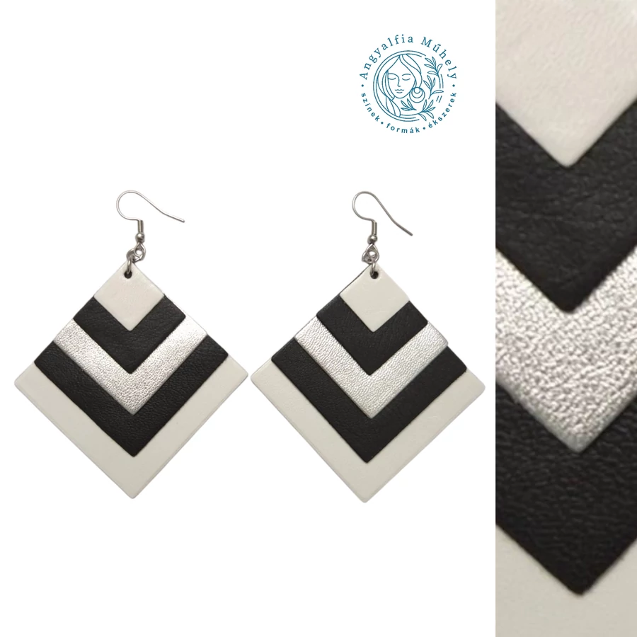 Fekete-fehér négyzet fülbevaló, ezüsttel