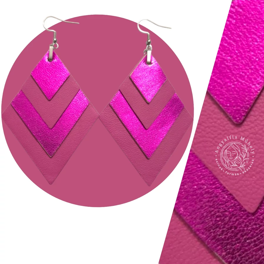 Fukszia-mályva rombusz bőr fülbevaló