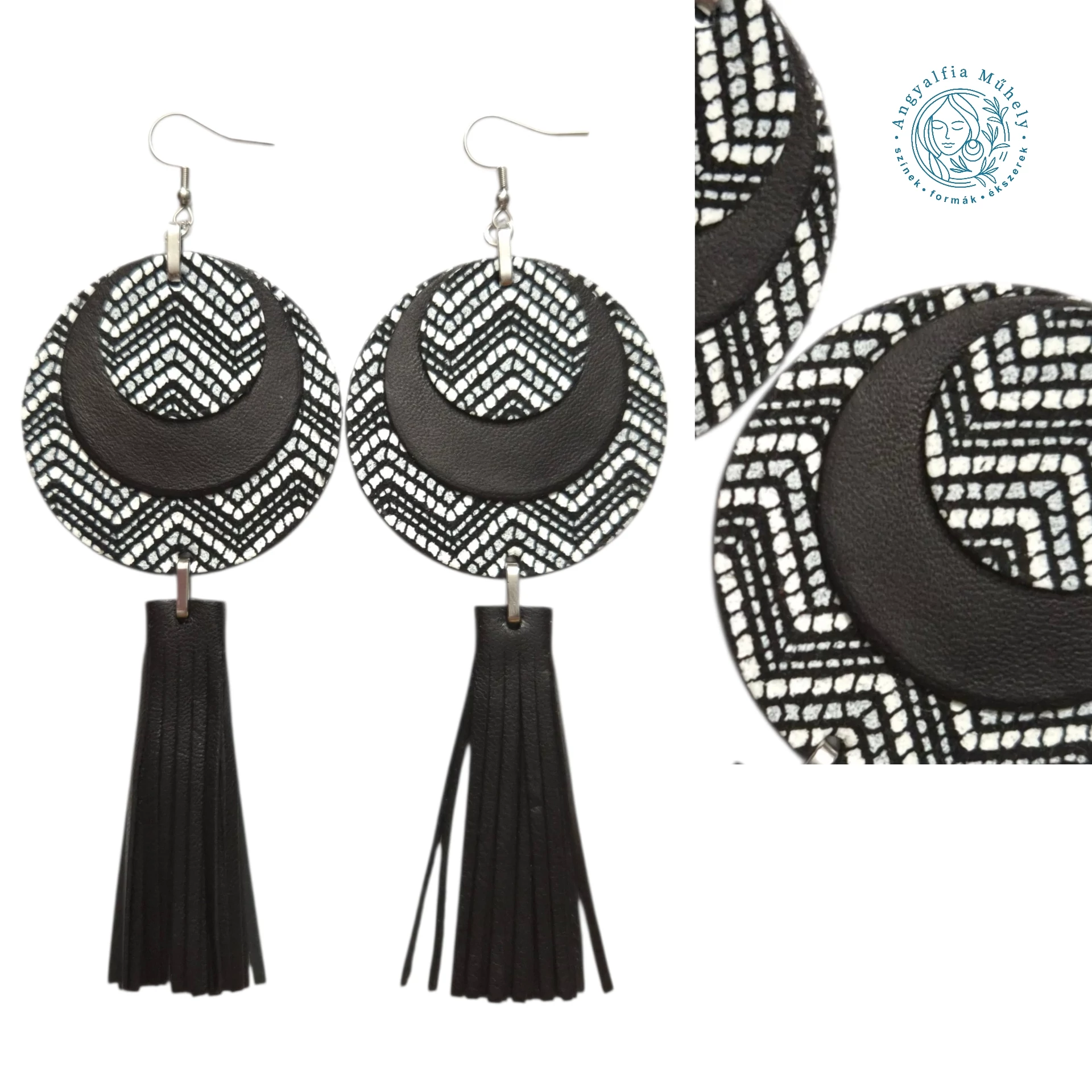 Geometrikus, mintázott fekete-fehér statement fülbevaló