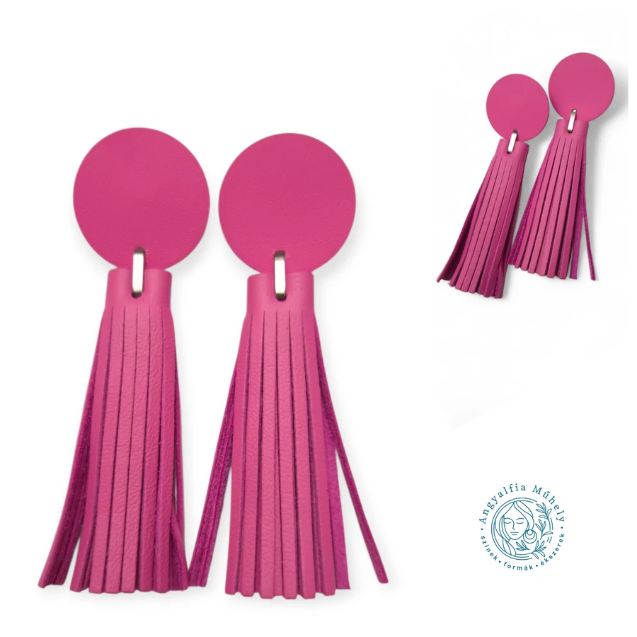 Gyönyörű bedugós-rojtos bőr fülbevaló, körrel