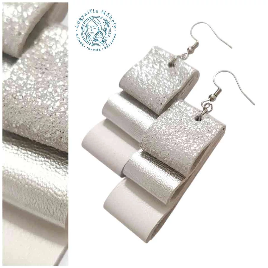 Gyönyörű ezüst-fehér hajtogatott bőr fülbevaló