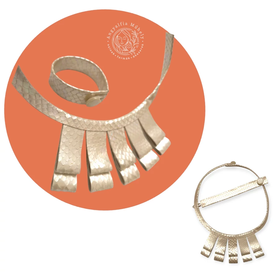 Irizáló bézs bőr ékszerszett, hajtogatott statement nyaklánccal