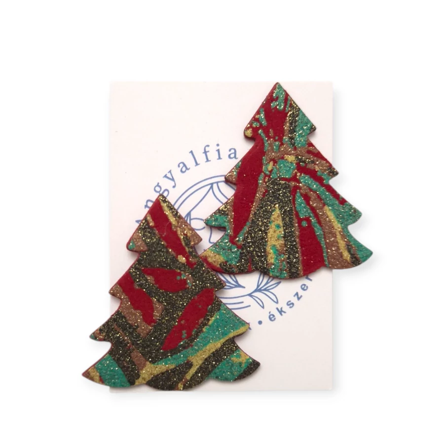 Különleges karácsonyfa bőr fülbevaló, bedugós