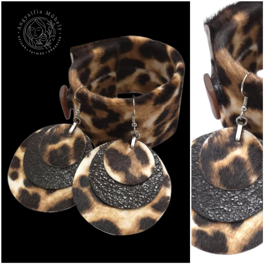 Limitált leopárdmintás bőr ékszerszett, kör fülbevalóval