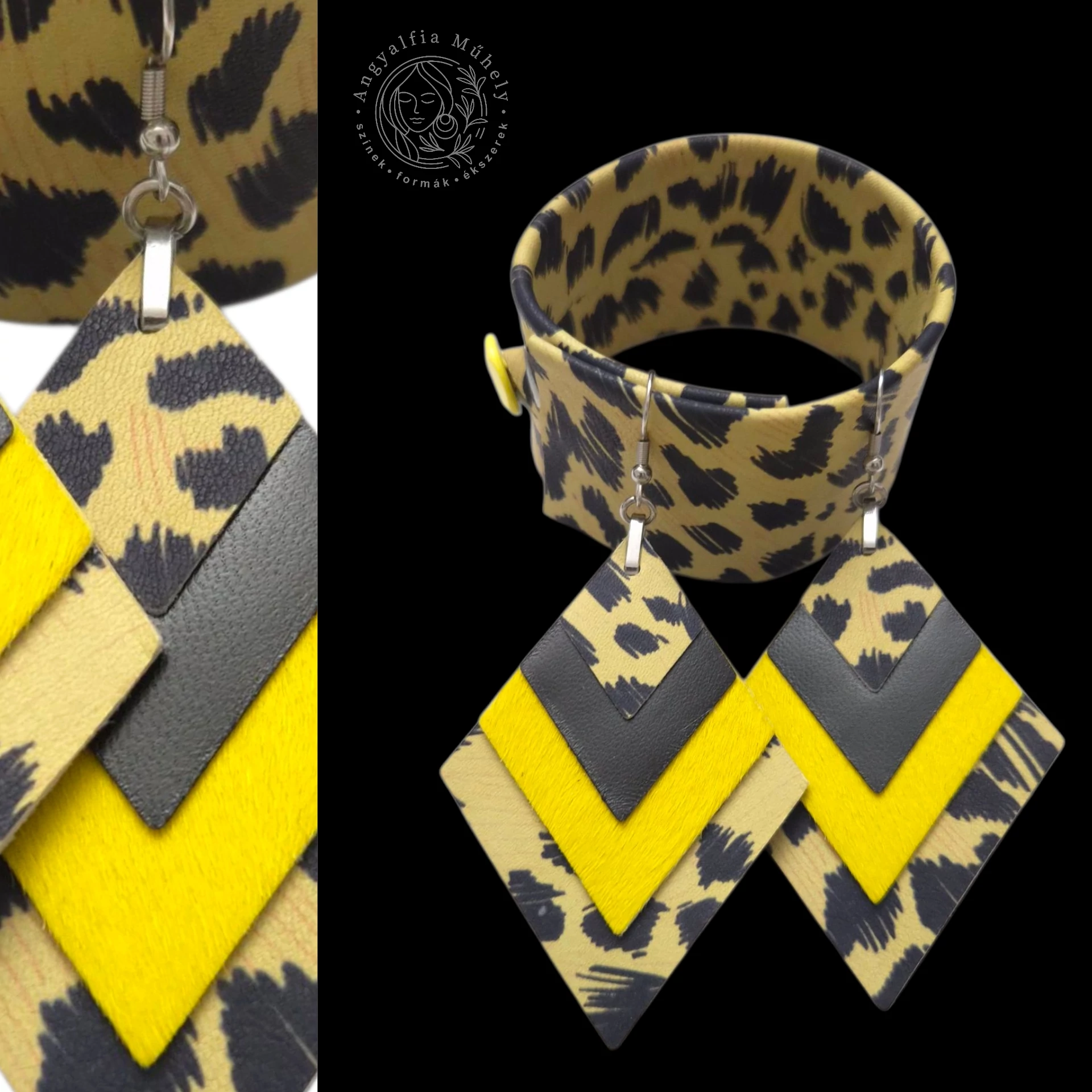 Limitált leopárdmintás bőr ékszerszett, rombusszal