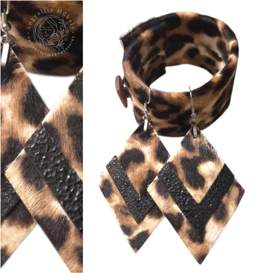 Limitált leopárdmintás rombusz bőr ékszerszett