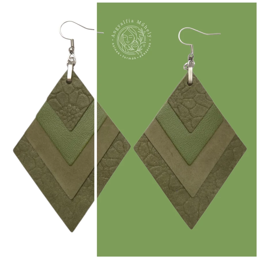 Olajzöld árnyalatok rombusz bőr fülbevaló