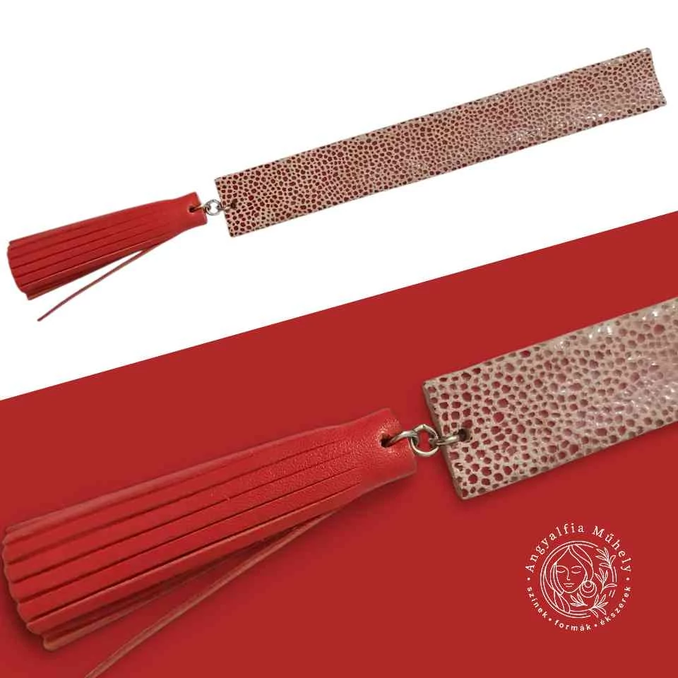 Olvasni jó! piros bőr könyvjelző, rojttal