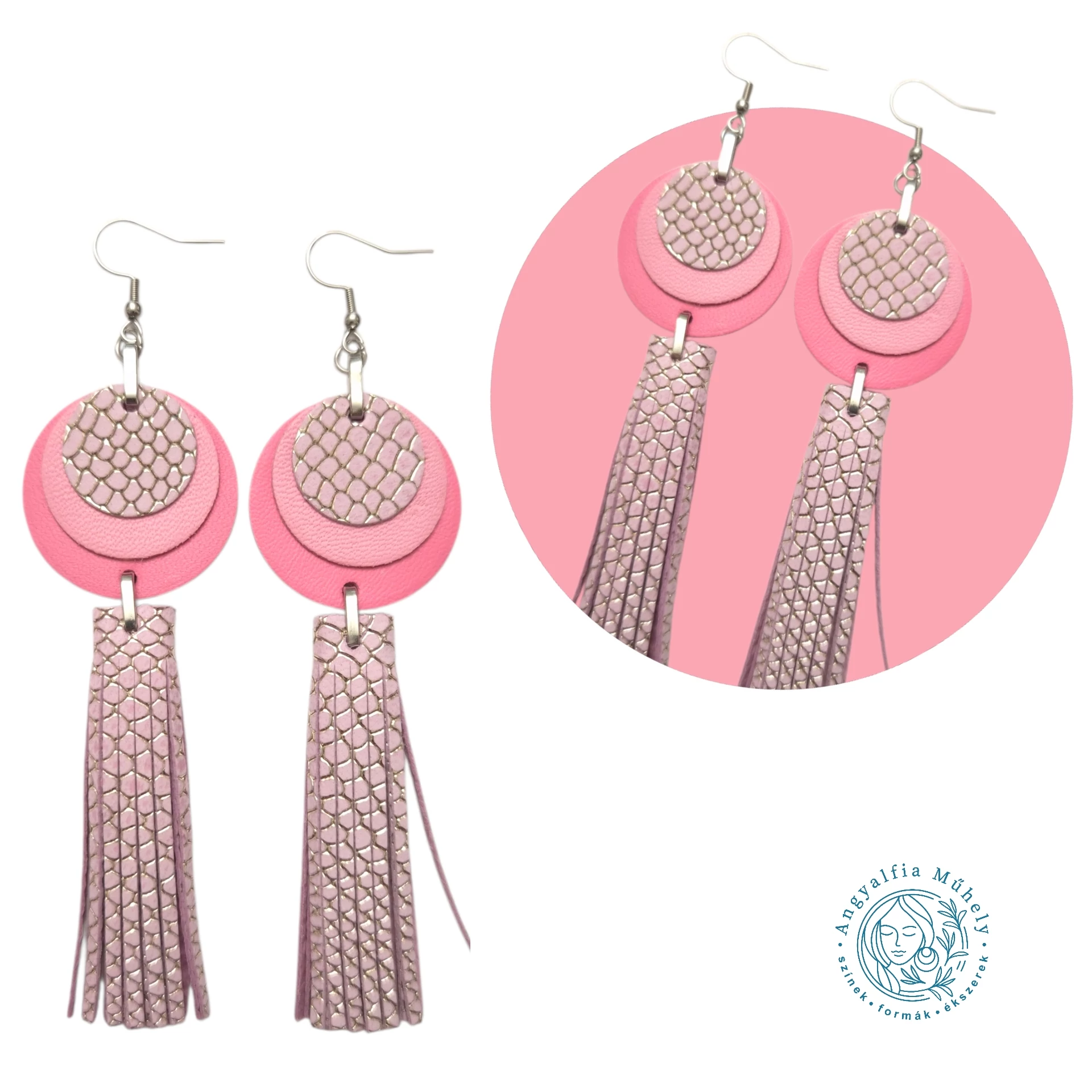 Rózsaszín-arany rácsos statement bőr fülbevaló