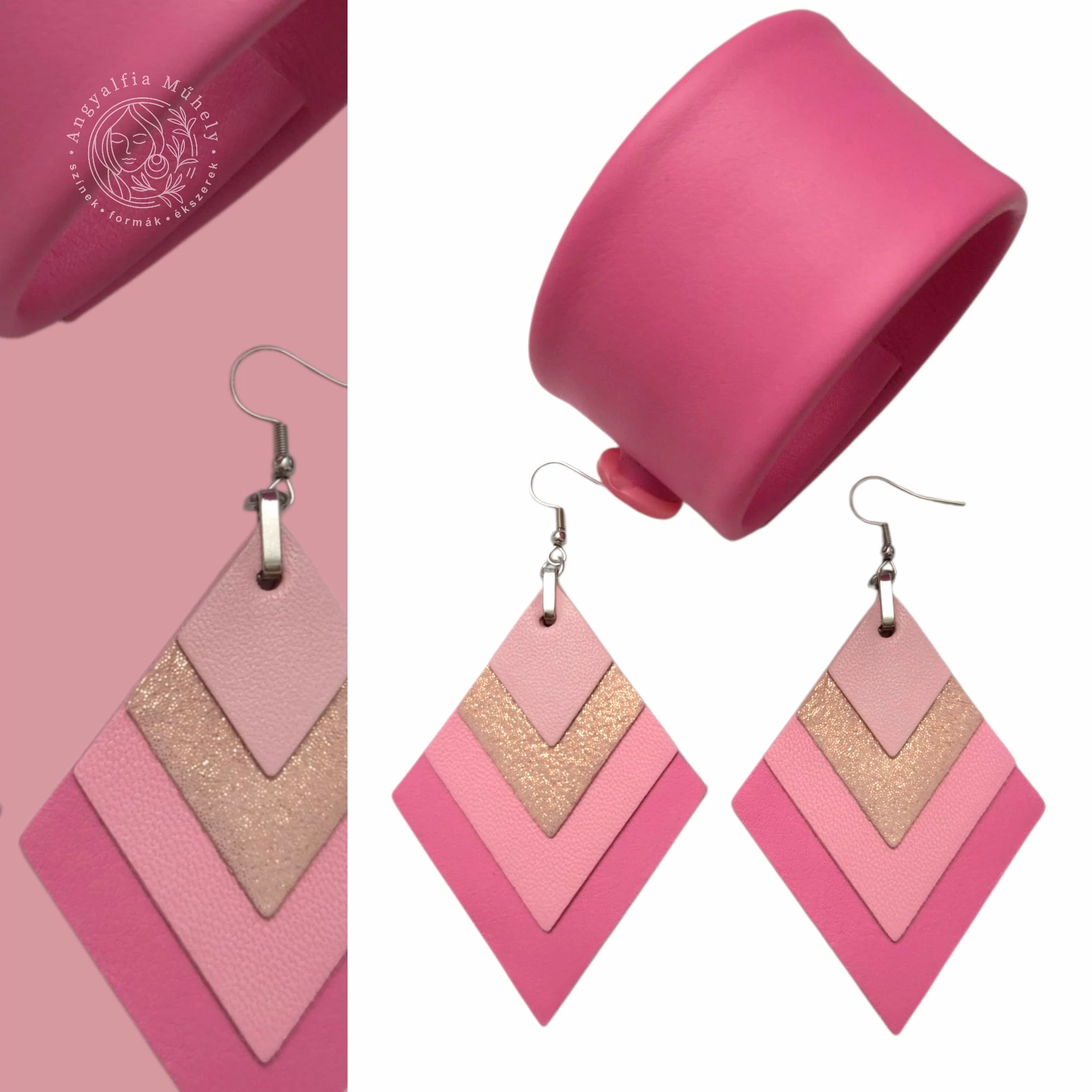 Rózsaszín rombusz bőr ékszerszett