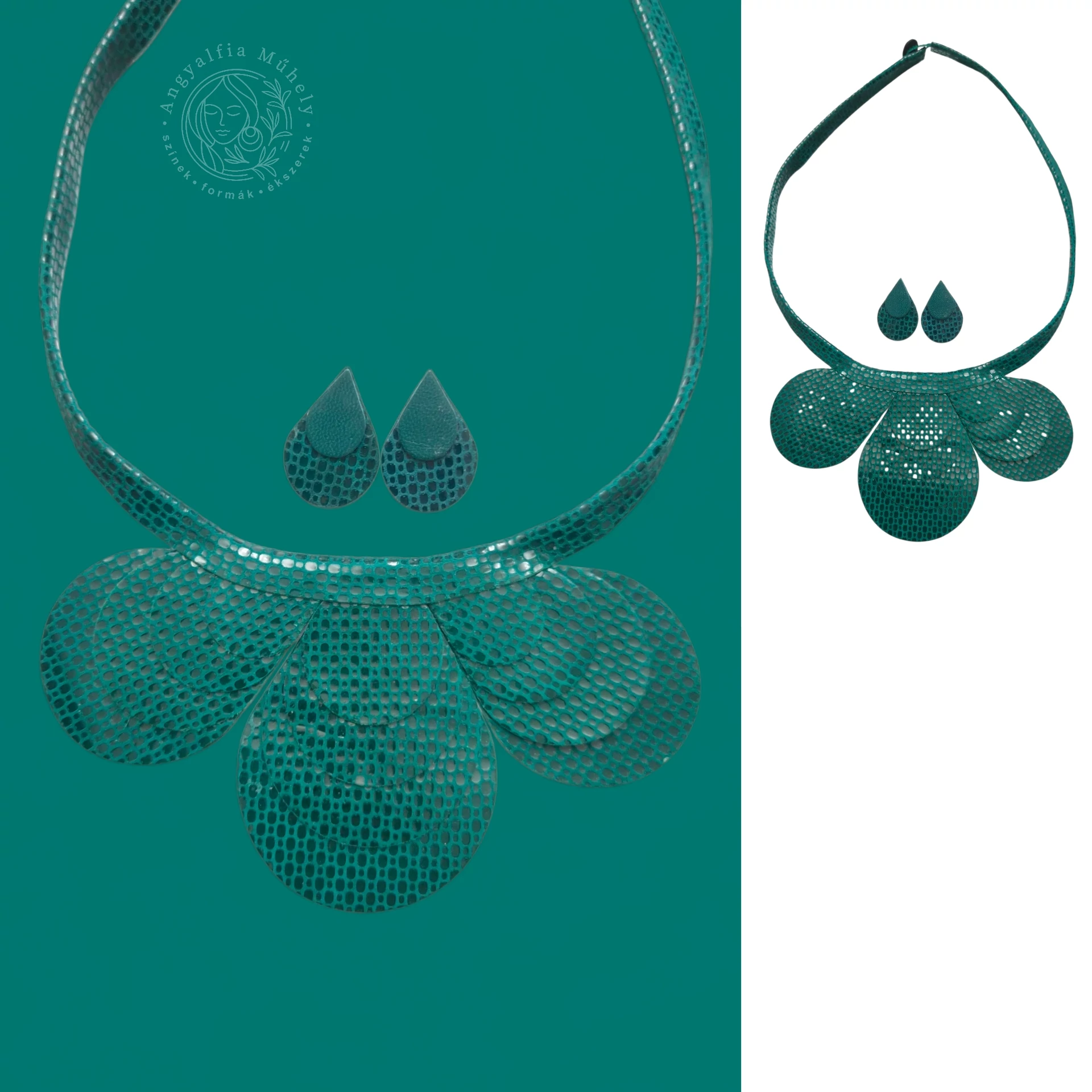Smaragdzöld, enyhén csillogó bőr ékszerszett