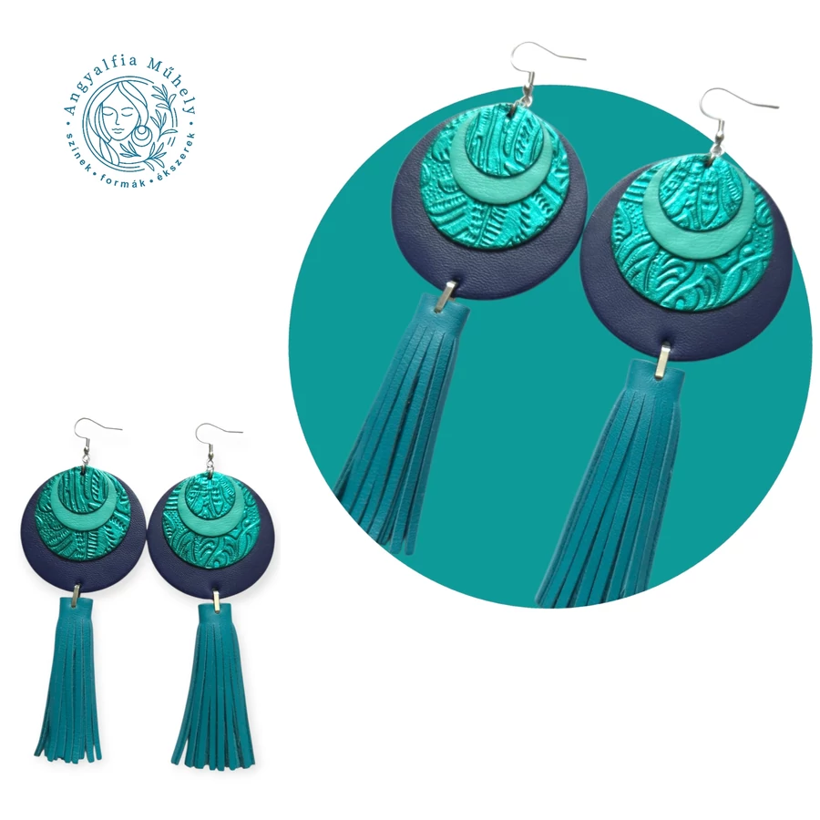 Smaragdzöld-türkiz statement bőr fülbevaló