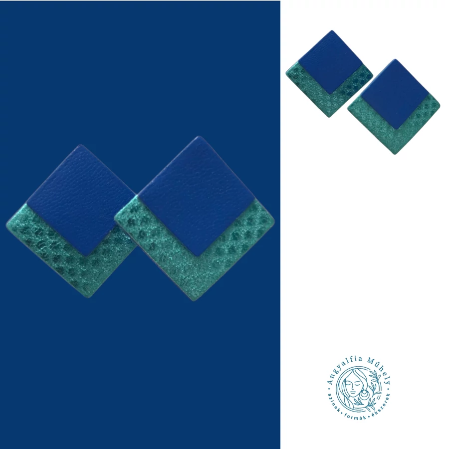 Türkizzöld-kék bedugós négyzet bőrékszer