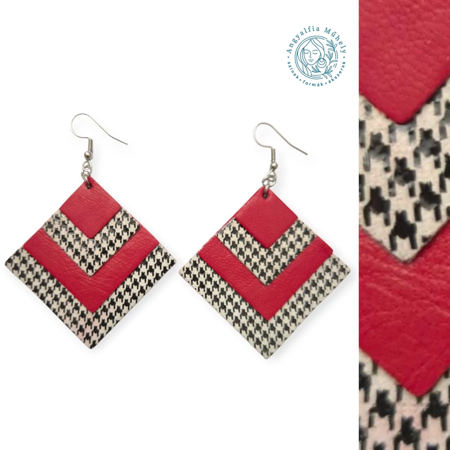 Tyúkláb mintás négyzet fülbevaló, pirossal